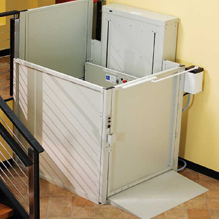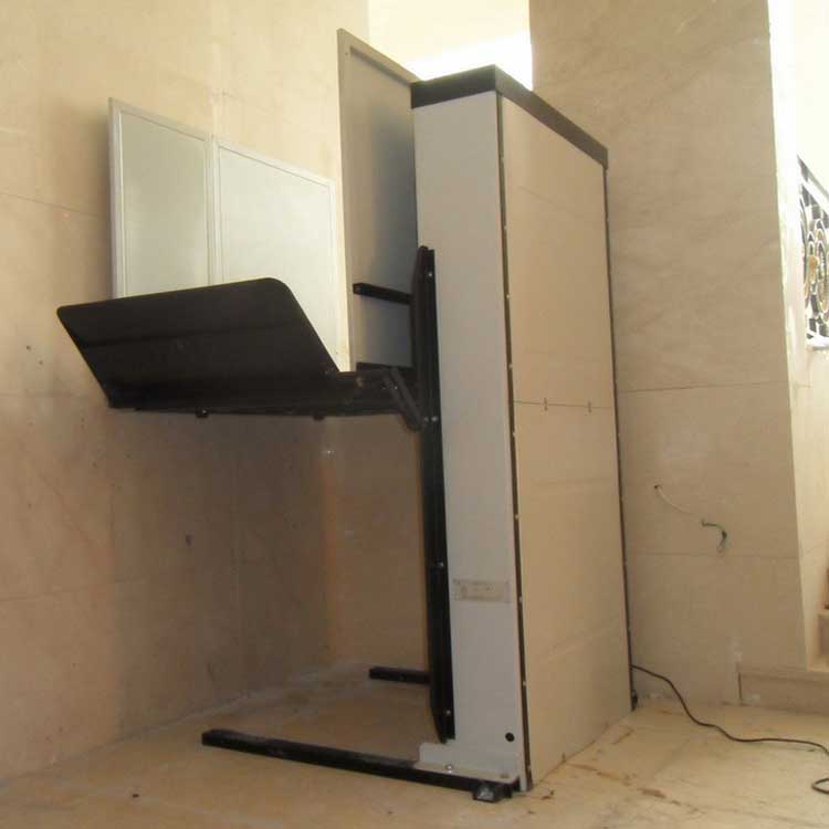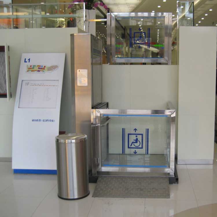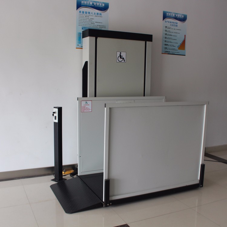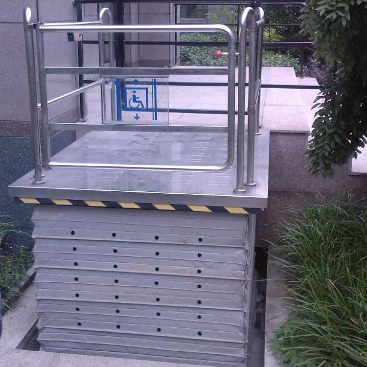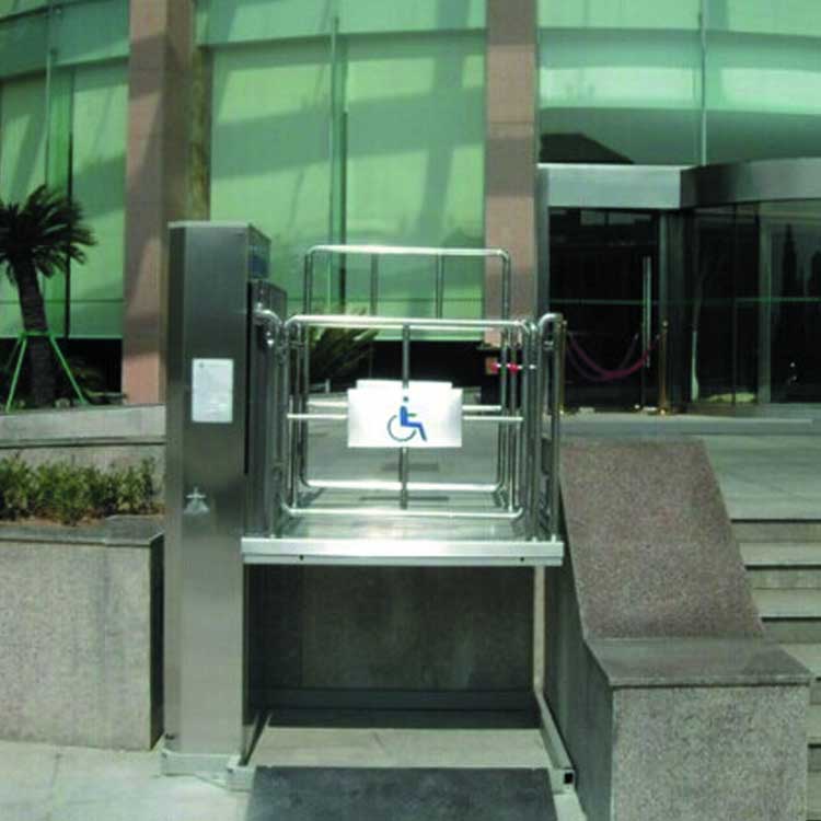 無障礙殘疾人升降平台由升降平台、導軌和驅動箱等三大部分組成(chéng);升降平台是 由C型鋼材爲主體部件,采用“翹闆自複位開(kāi)關操作運行”, 無基坑式安裝,直接固定于混凝土地面(miàn)(無底坑室外應用情況下,平台下方混凝土地面(miàn)不得低于周圍地面(miàn)) ,手動液壓閥打開(kāi)時(shí)升降底闆能(néng)手動下降;液壓驅動,升降平穩安全,外部采用拉絲不鏽鋼材料和鋁闆靜電噴塑機箱/面(miàn)闆,外形小巧美觀,不阻礙周邊環境。殘疾人升降機直接安裝于地面(miàn),無需土建配套地坑,施工簡便,産品放置戶外不易積水,不易生鏽,維護簡便。